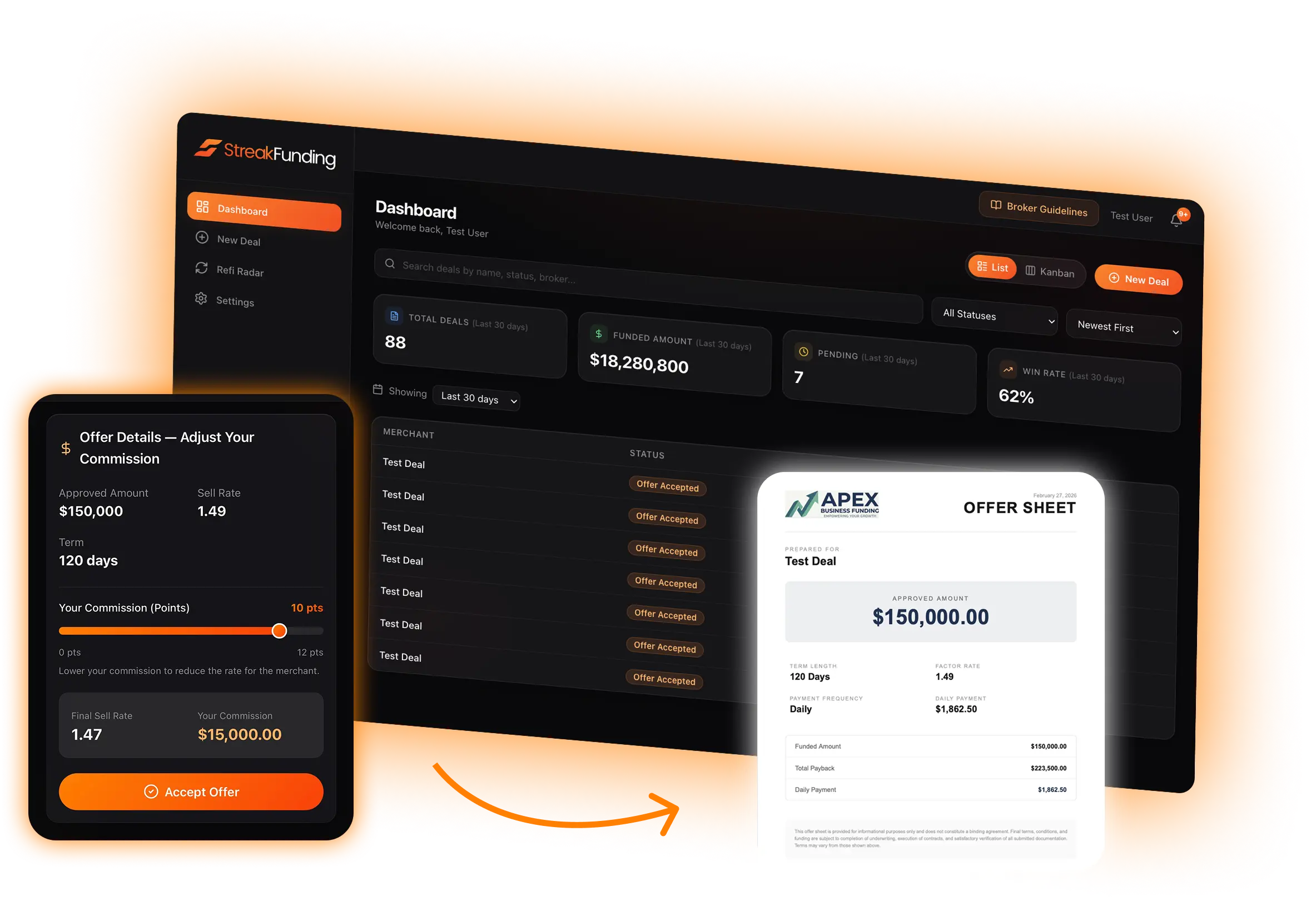 Forget messy spreadsheets. Track every submission, offer, and funding status in real-time from your iPhone, Android, or desktop.